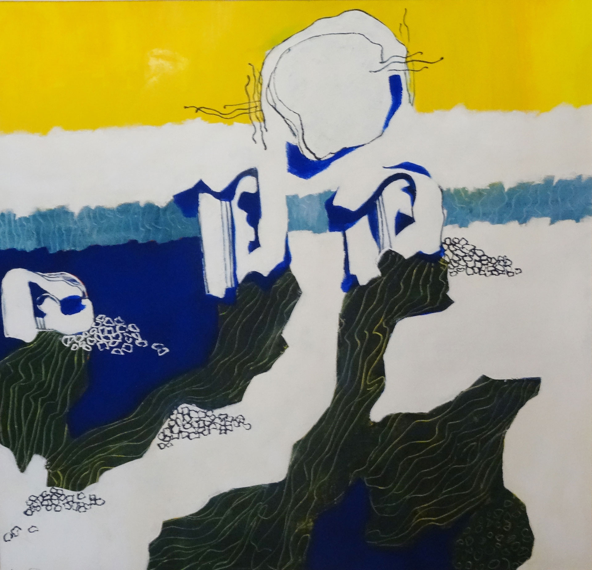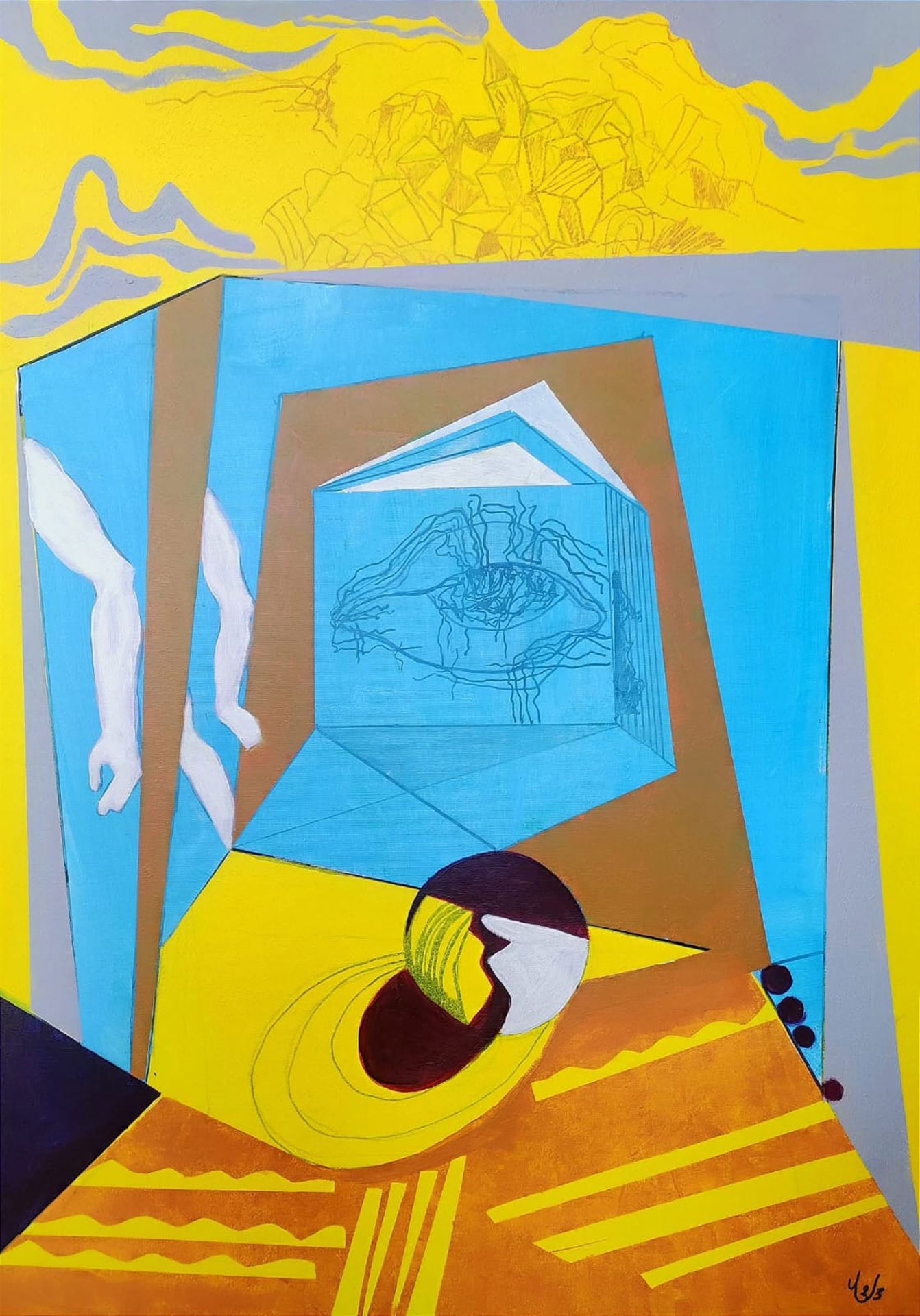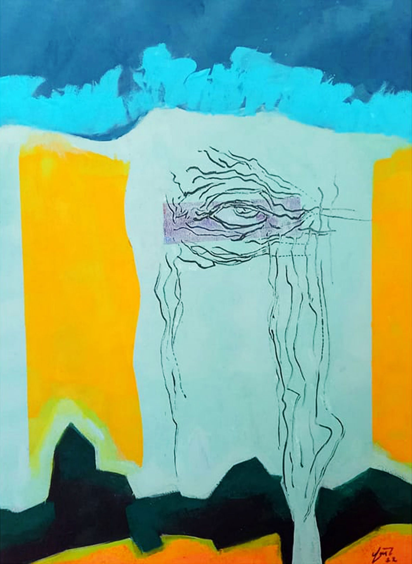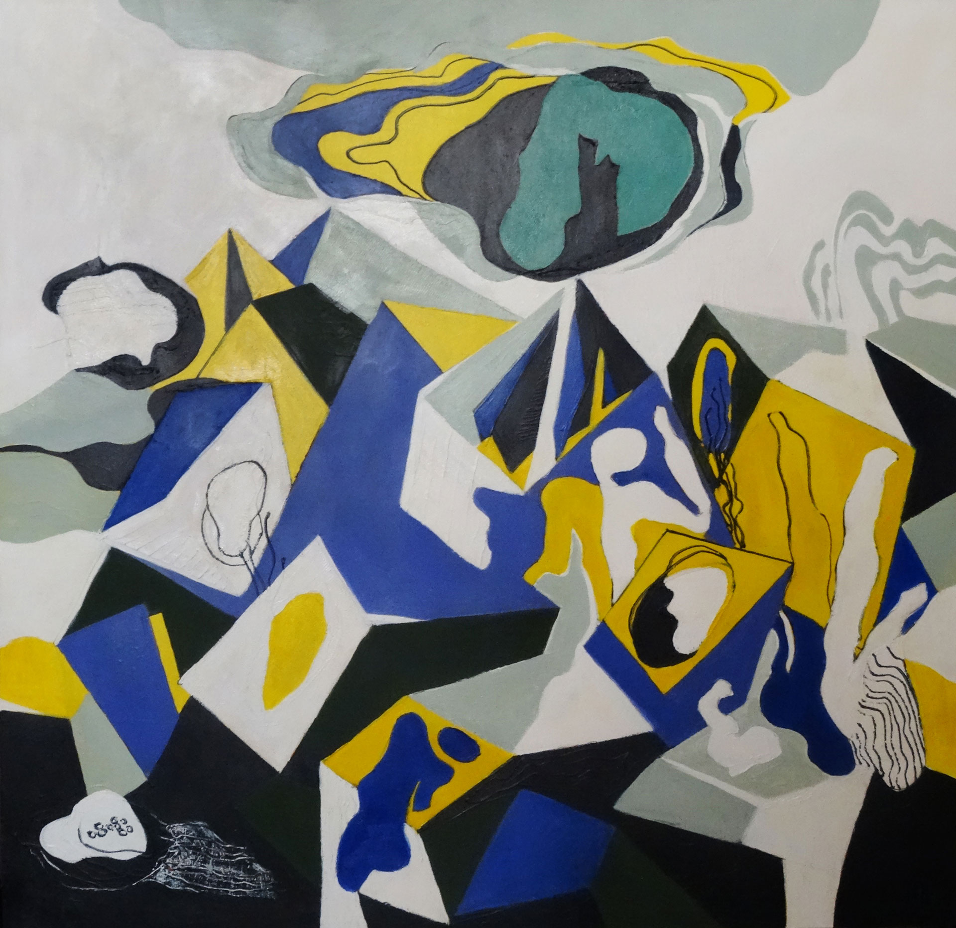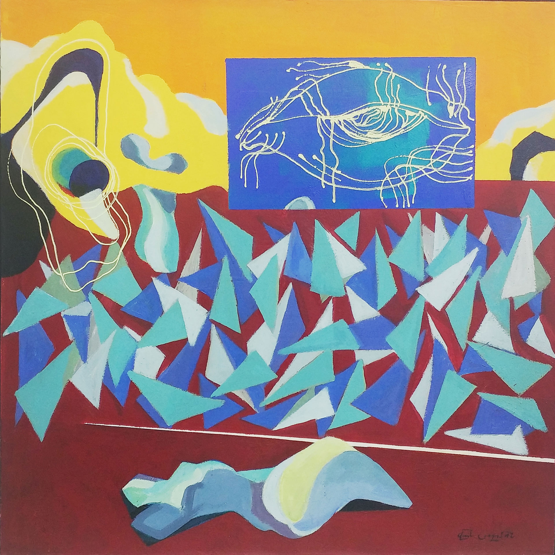 Յուղաներկ, ակրիլ, կոլաժ կտավի վրա, 90×80 սմ, 1994, մասնավոր հավաքածու, Գերմանիա